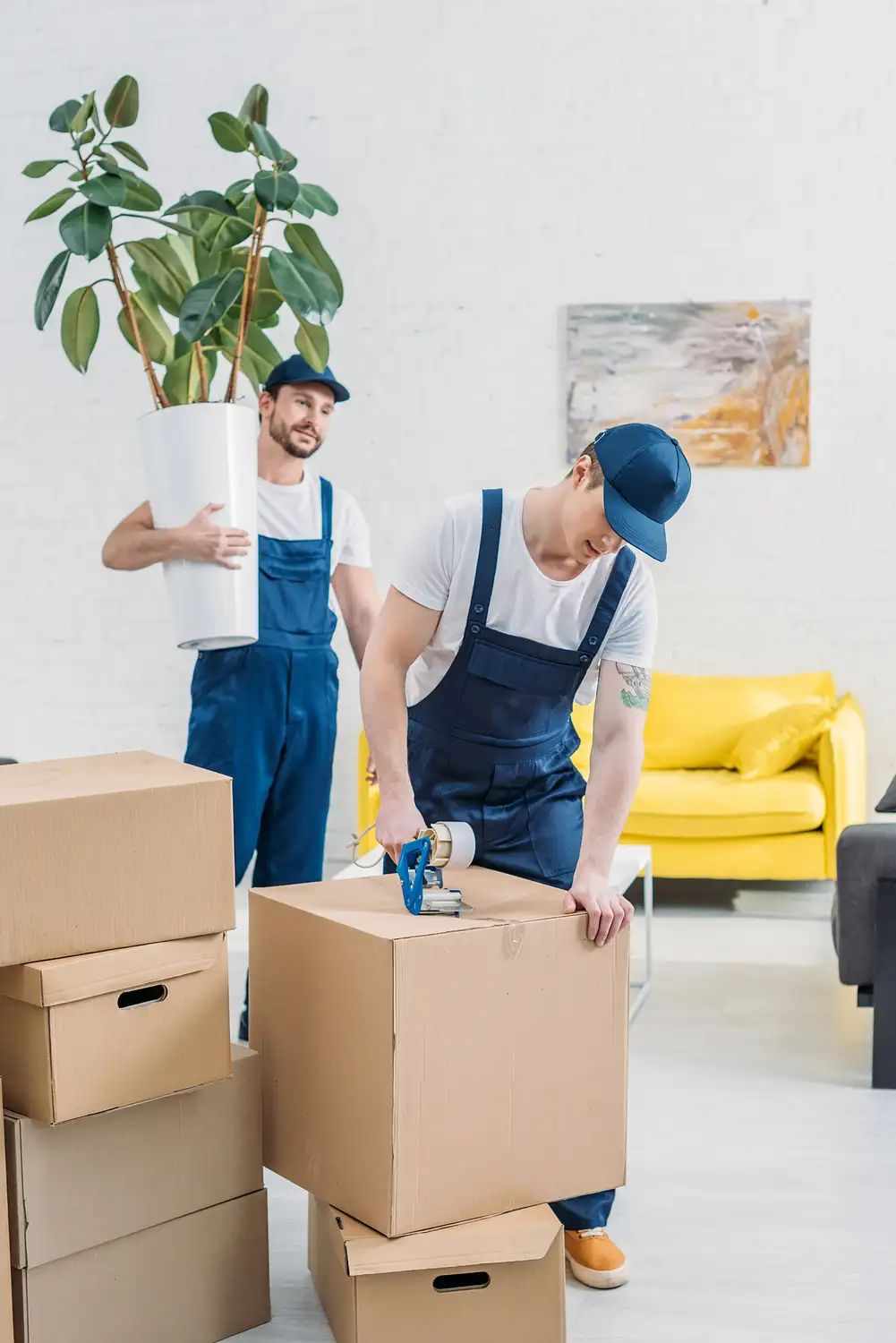 Packing Day: Two-man teams (or more) wrap onsite, boxes labelled, heavy lifts first. Tea breaks included.